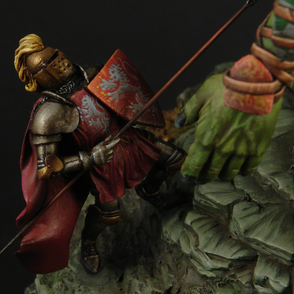 The concept is an all-time classic…The “brave and gallant” knight confronting the “ugly and despicable” giant.