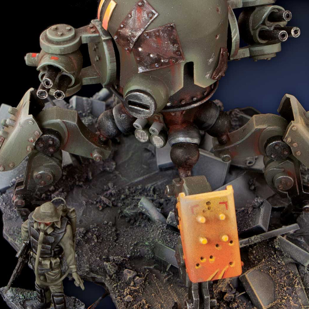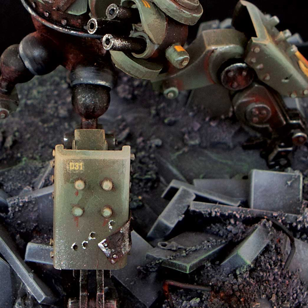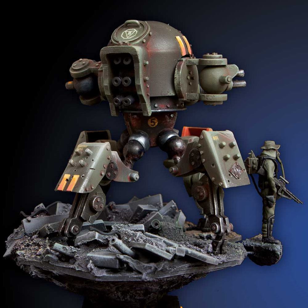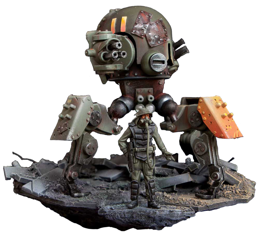 Over the years she has hoarded and collected scrap pieces from abandoned vehicles, machines, and weapons. Things were getting out of hand, so she needed more protection than a poxy knife or measly gun. She needed a hunter killer at her side, a robot with murderous instincts that would execute her every command.