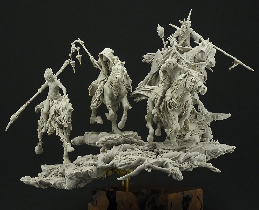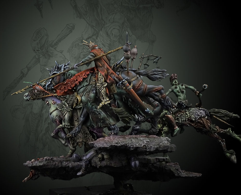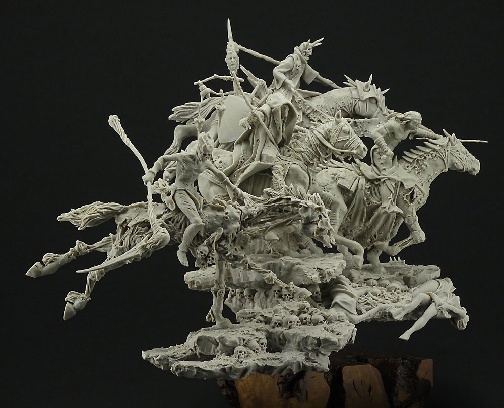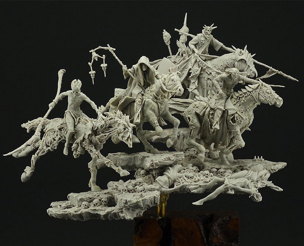 - Detailed description: War (15 high quality resin parts) - Hunger (10 high quality resin parts) - Pestilence (10 high quality resin parts) - Death (9 high quality resin parts) - A big scenery AVAILABLE ONLY at the collector’s edition. The scenery is in 3 big resin parts (4x 54 miniatures – bodies and A LOT of skulls)