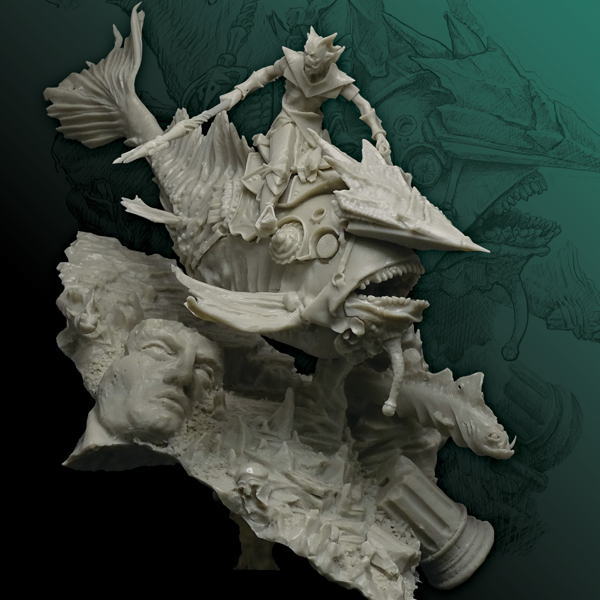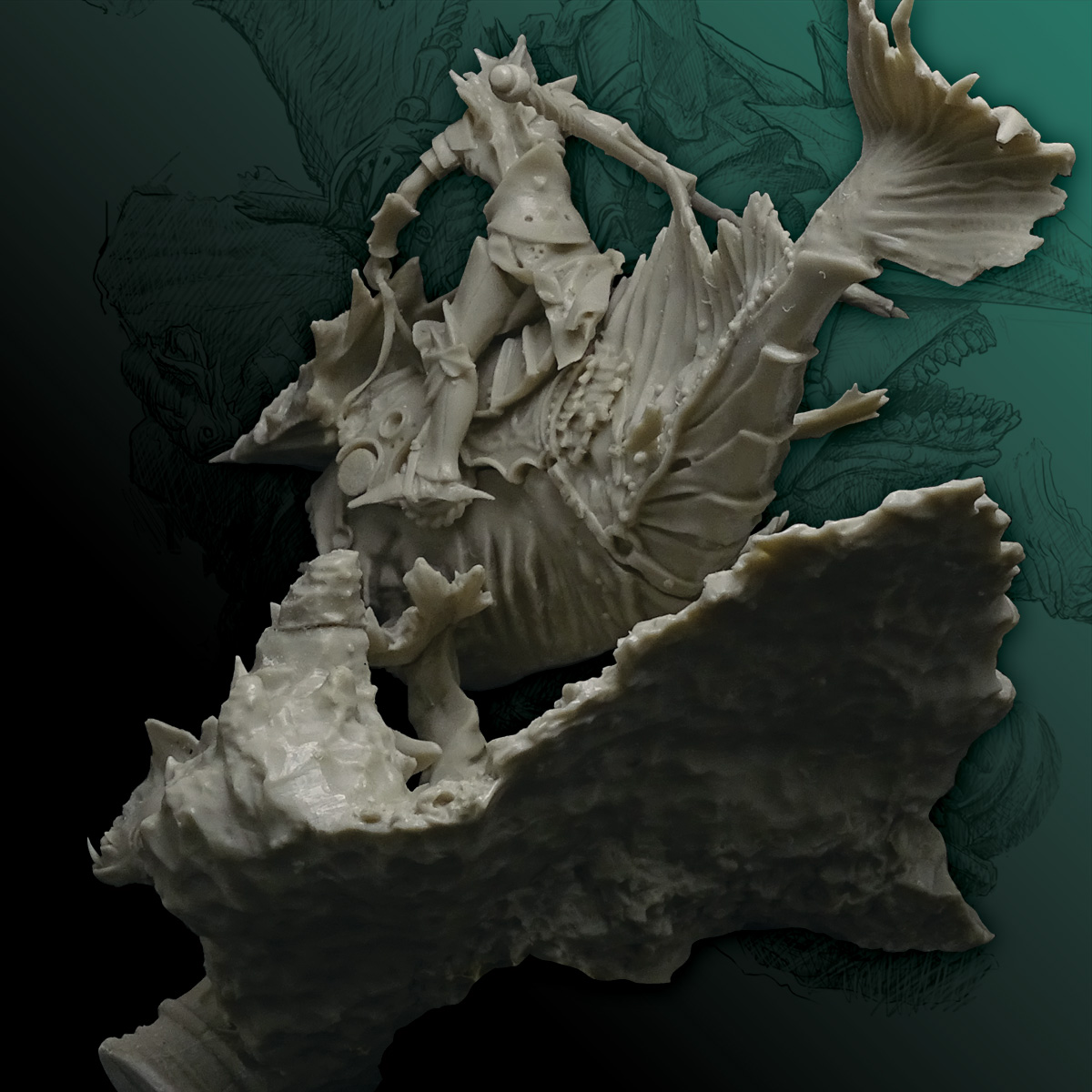 - Detailed description: Rider, 54mm (4 high quality resin parts) - Water creature (6 high quality resin parts) - A big scenery (ocean floor) AVAILABLE ONLY at the collector’s edition!!! The scenery includes 2x abyssal fish and statue ruin.