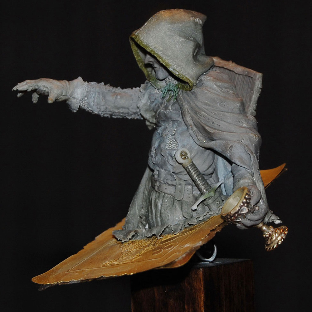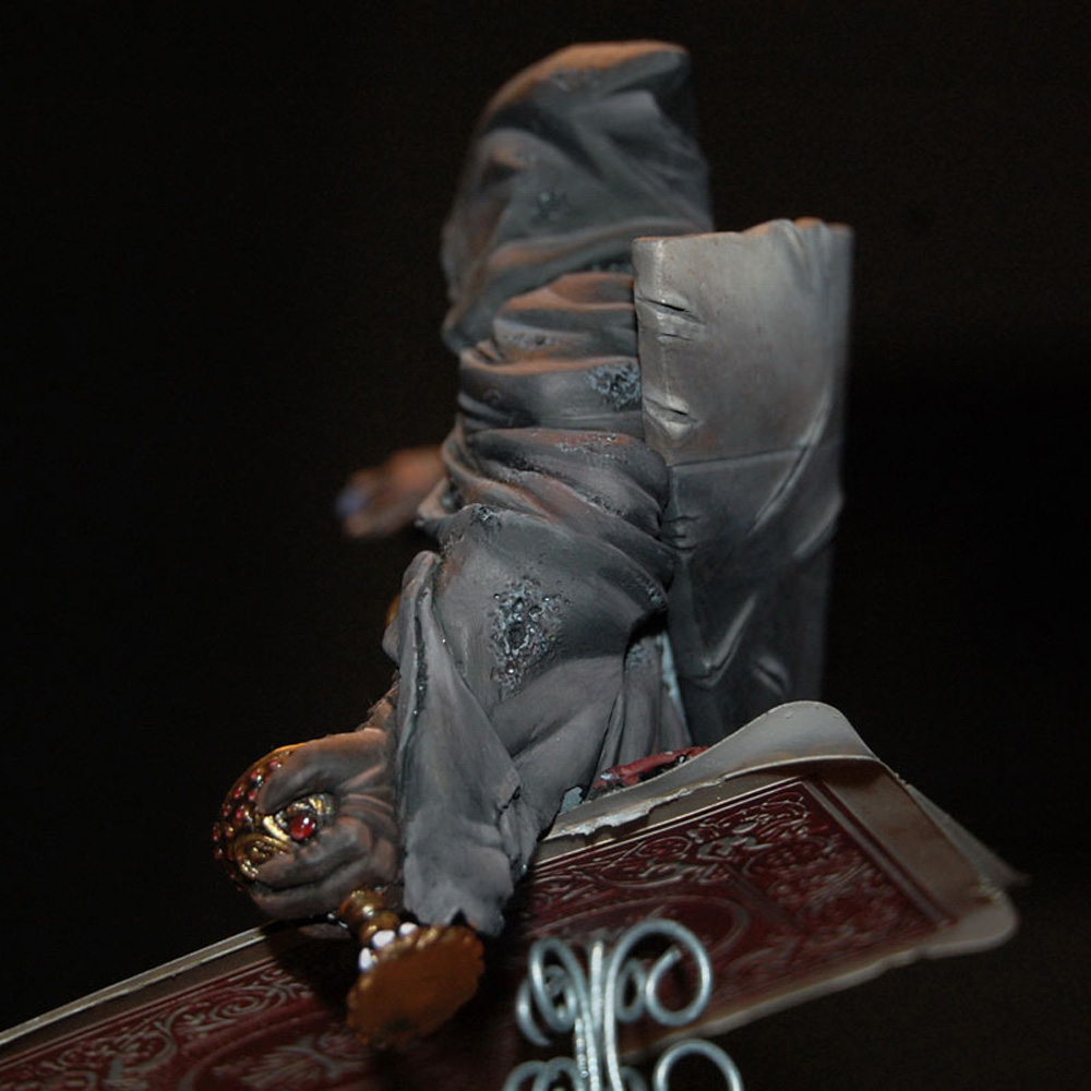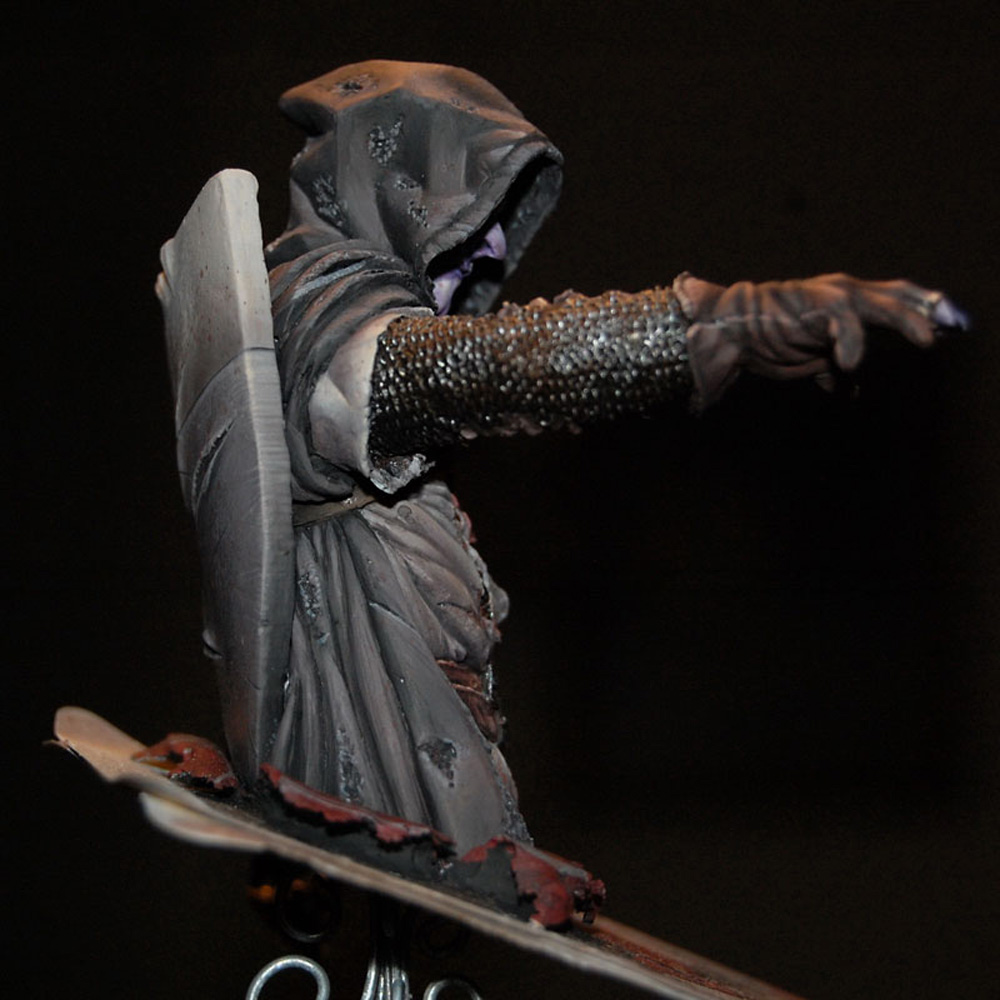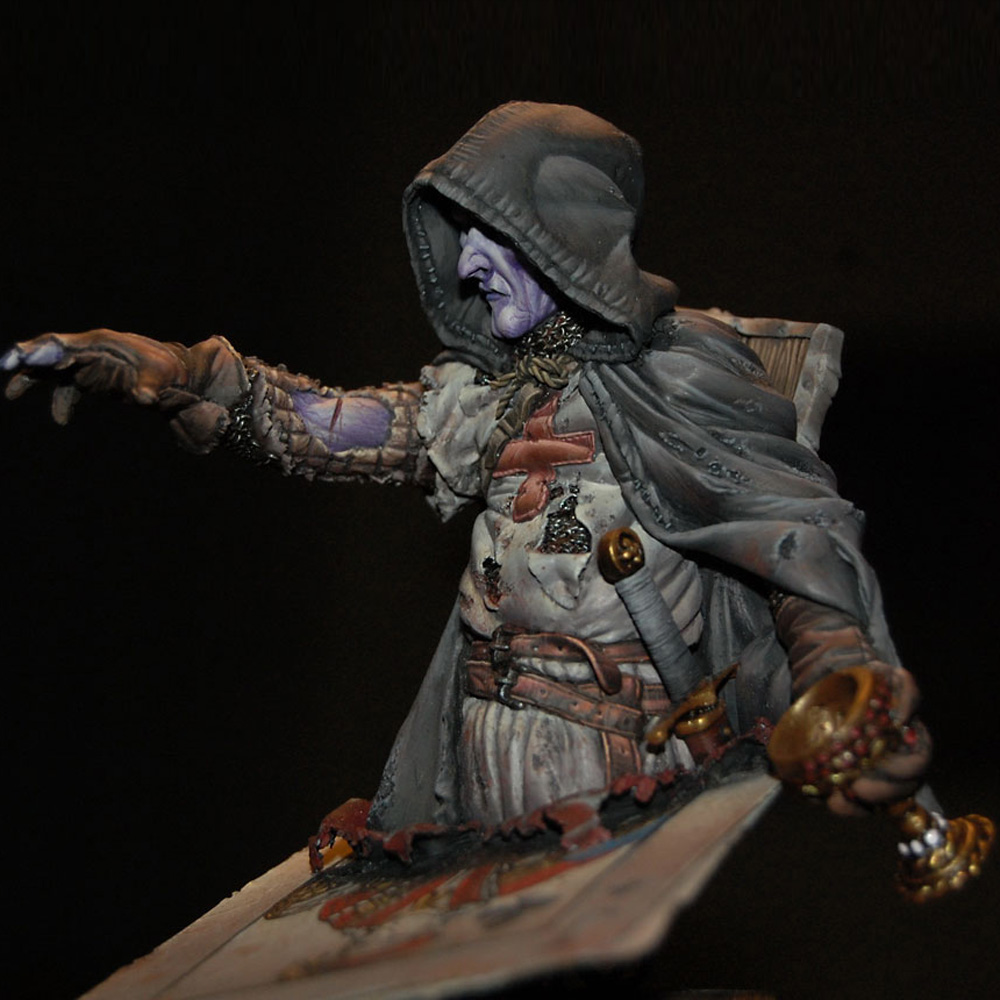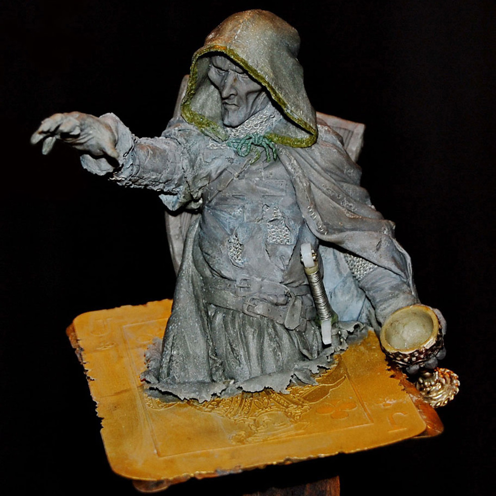 The second bust in a series inspired by characters from a traditional deck of playing cards - Four figures sitting on top of the King of Hearts, the Queen of Diamonds, the Jack of Clubs and the Ace of Spades. The jack, knight or warrior is governed by his principles and high ethical standards, but were the causes he fought for so vehemently always just? Haunted by his deeds this undead ghost-like crusader questions the morals and motives behind the so-called "holy" crusades.