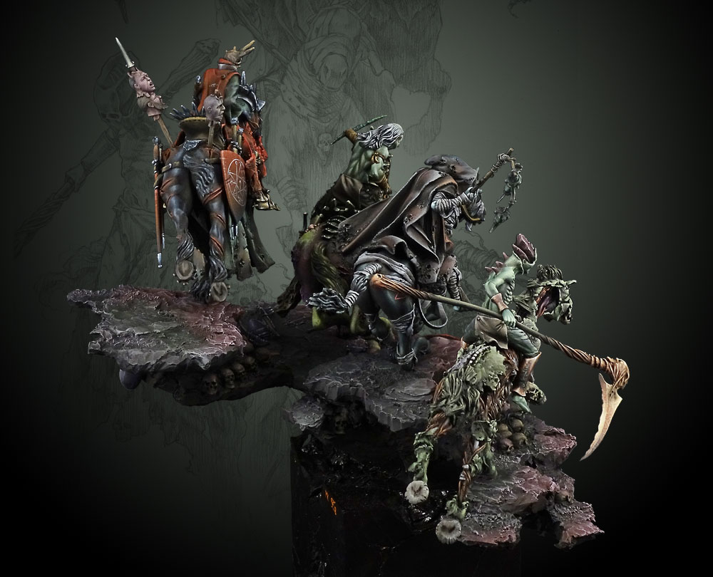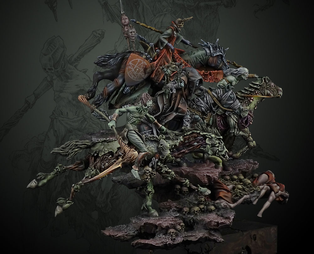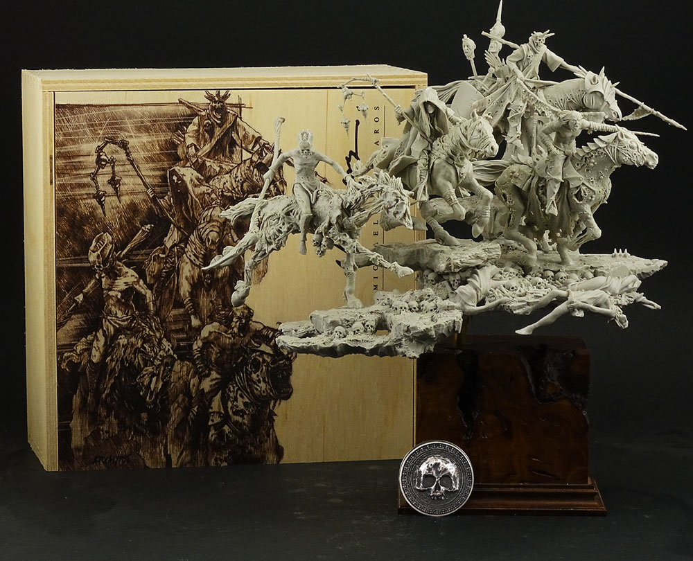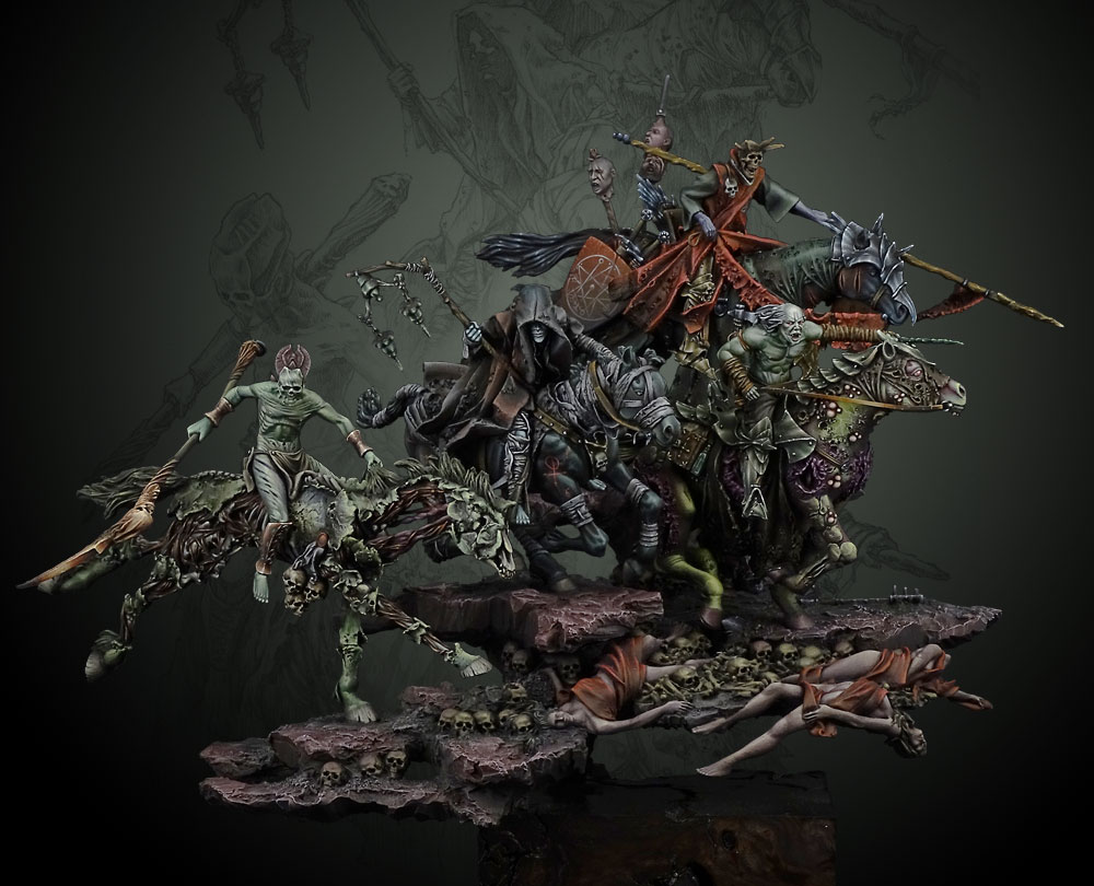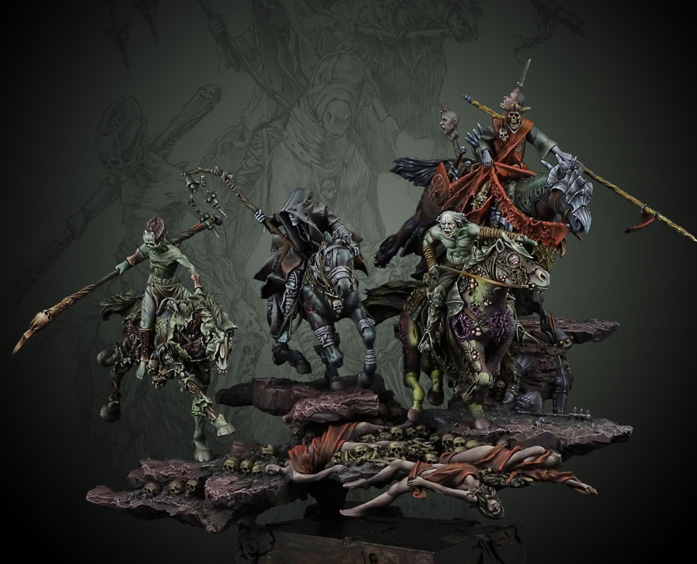 - Detailed description: War (15 high quality resin parts) - Hunger (10 high quality resin parts) - Pestilence (10 high quality resin parts) - Death (9 high quality resin parts) - A big scenery AVAILABLE ONLY at the collector’s edition. The scenery is in 3 big resin parts (4x 54 miniatures – bodies and A LOT of skulls)