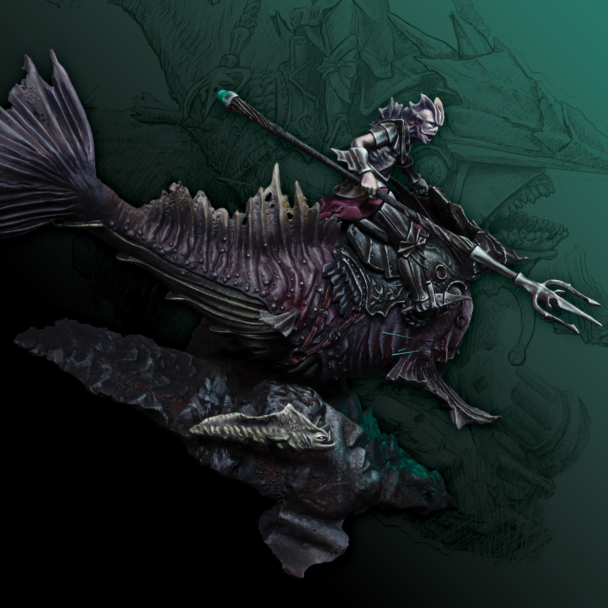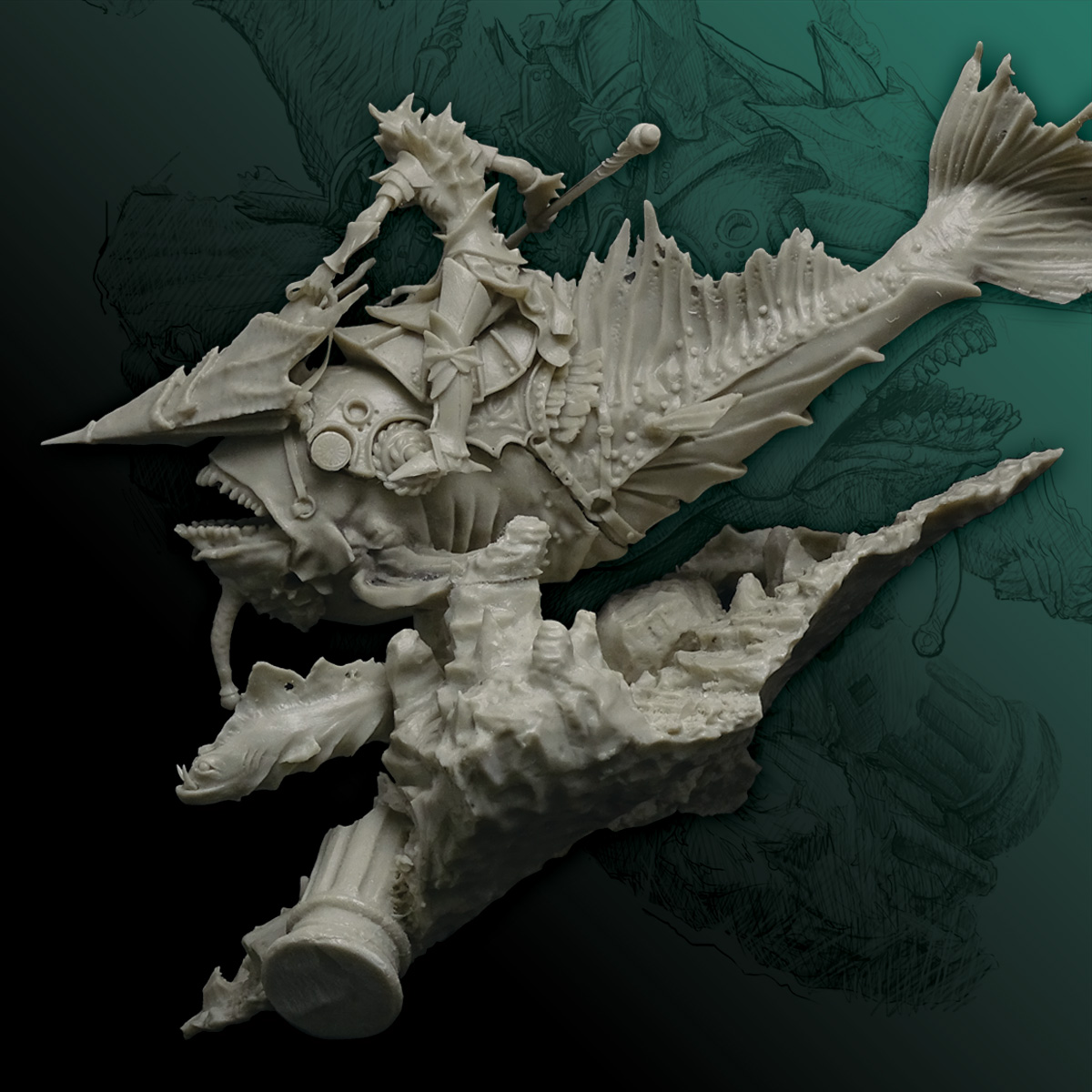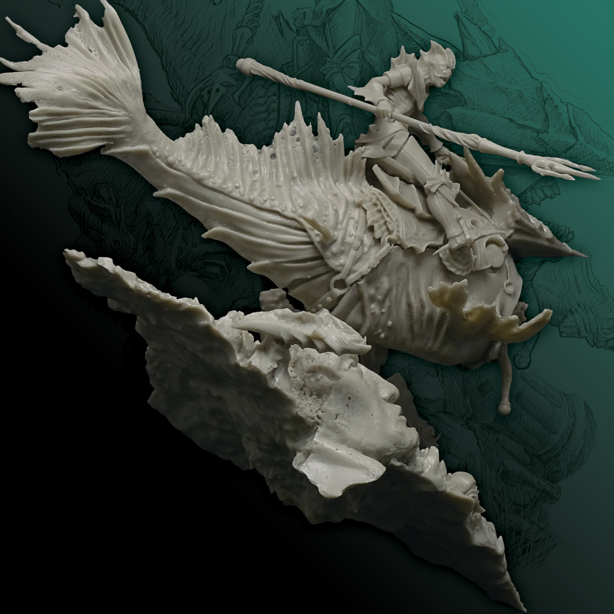 - Detailed description: Rider, 54mm (4 high quality resin parts) - Water creature (6 high quality resin parts) - A big scenery (ocean floor) AVAILABLE ONLY at the collector’s edition!!! The scenery includes 2x abyssal fish and statue ruin.