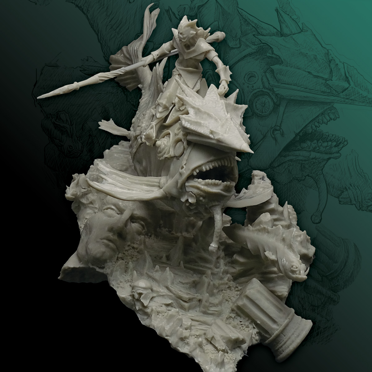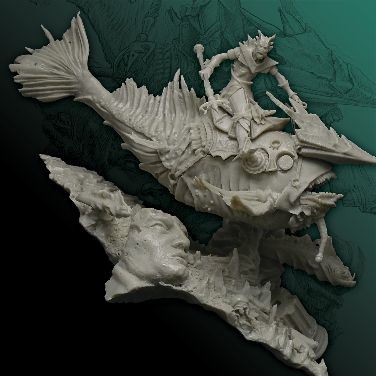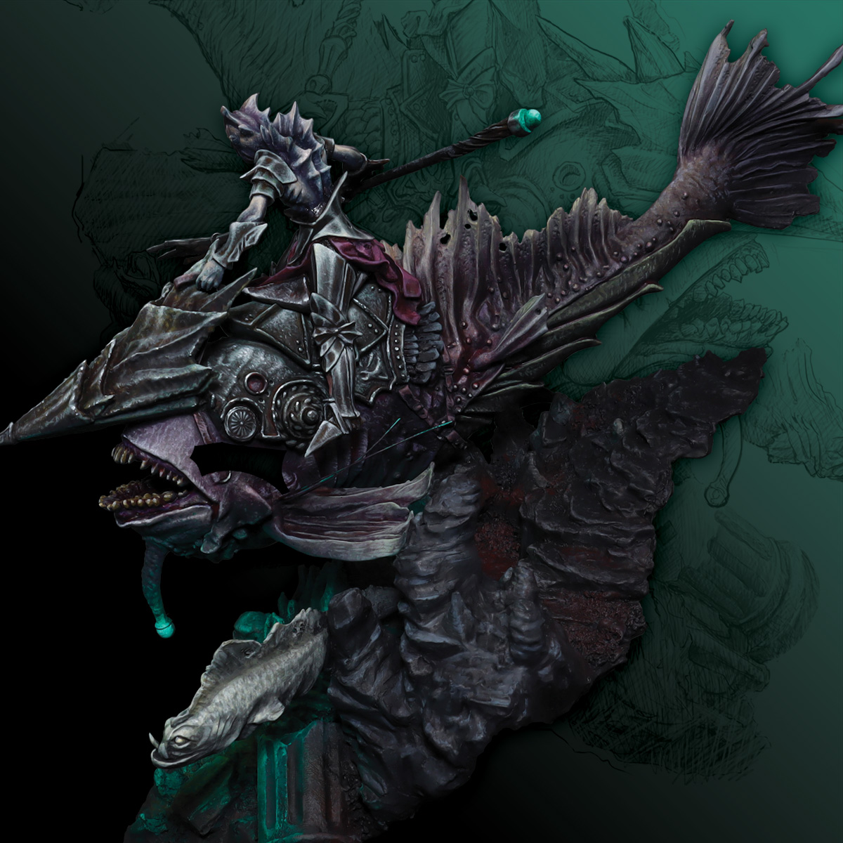 - Detailed description: Rider, 54mm (4 high quality resin parts) - Water creature (6 high quality resin parts) - A big scenery (ocean floor) AVAILABLE ONLY at the collector’s edition!!! The scenery includes 2x abyssal fish and statue ruin.